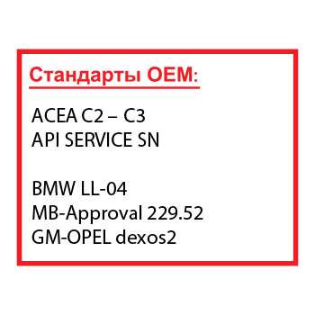 Соответствие омологации 229.52 дает возможность использовать данное масло на двигателях автомобилей, оснащенных селективно-восстановительной системой очистки (SCR).