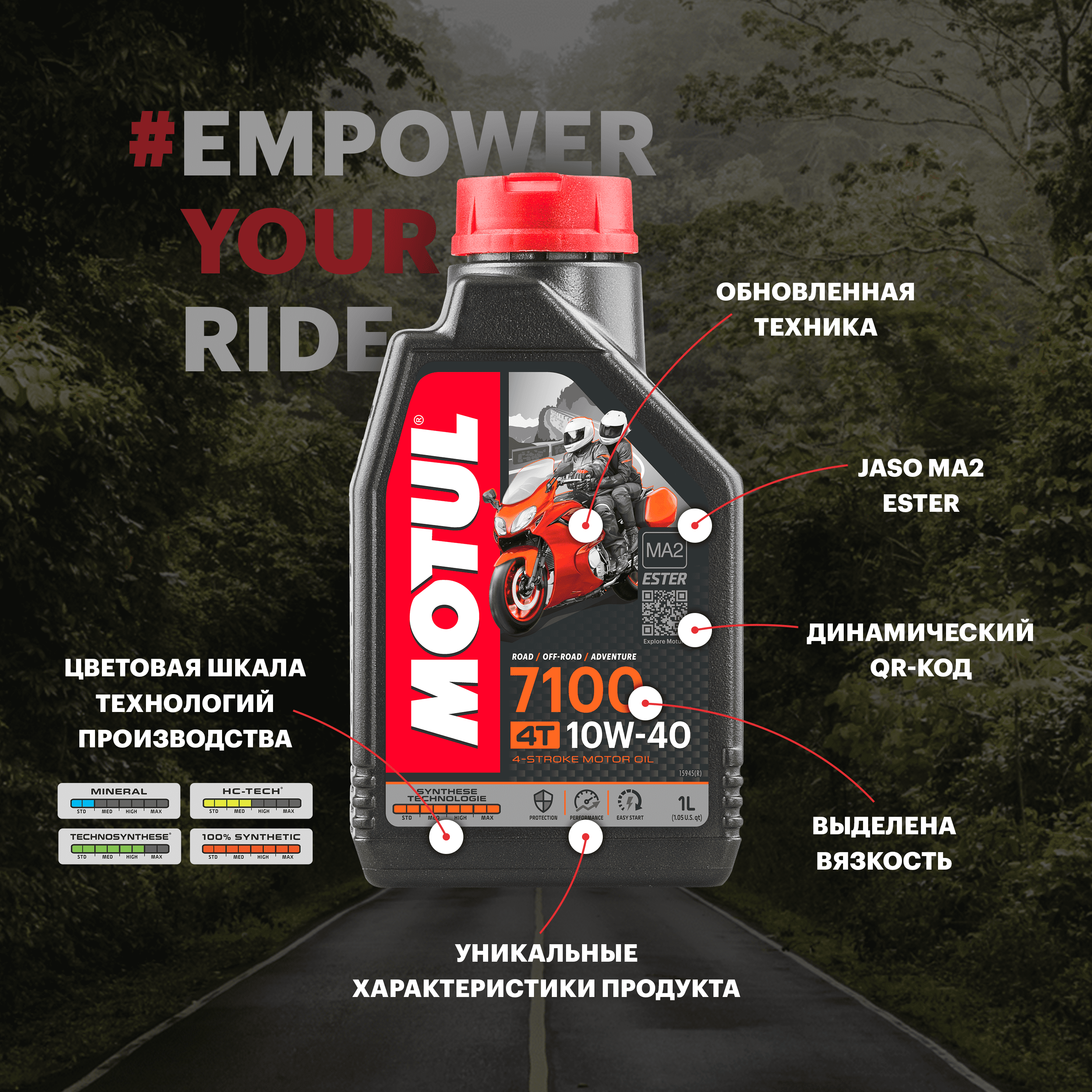 Обратите внимание на иконки в нижней части этикетки: Вы сразу увидите преимущества продукта, который держите в руках. Фанаты Motul заметят ещё и тактильное отличие – селективную печать новых этикеток. Отсканируйте QR-код, находящийся в правой части этикетки с помощью смартфона – это самый легкий способ найти дополнительную информацию о продукте и торговых акциях, которые Вас ожидают.