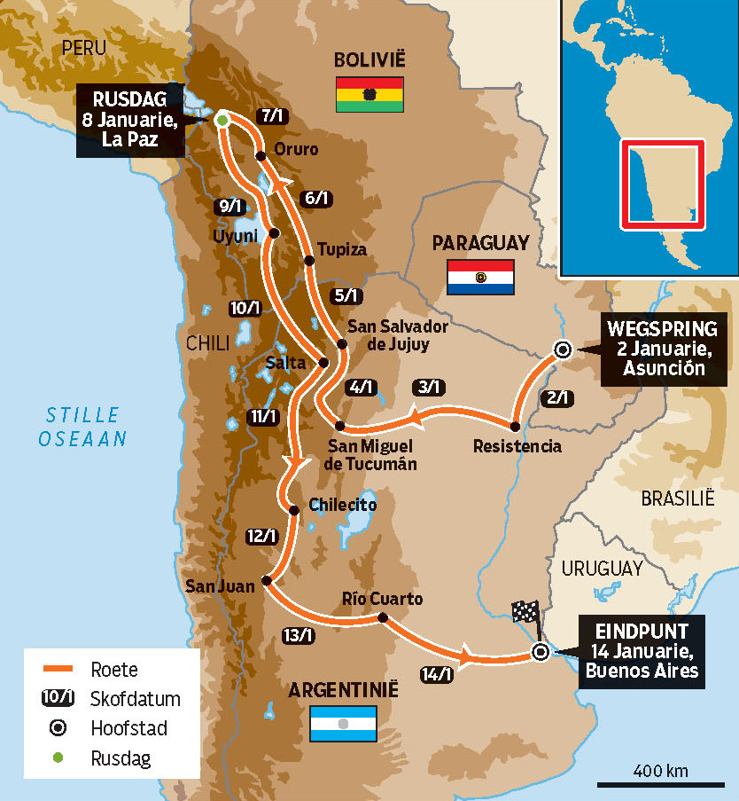 Гонщикам представится возможность насладиться пейзажами Парагвая, Боливии и Аргентины. В состав участников войдет около 30 гонщиков, которых поддерживает компания Motul в двух основных категориях байков и автомобилей, представляющих 16 различных сегментов рынка таких стран, как Австралия, Эстония, Южная Америка, Бразилия и Аргентина.